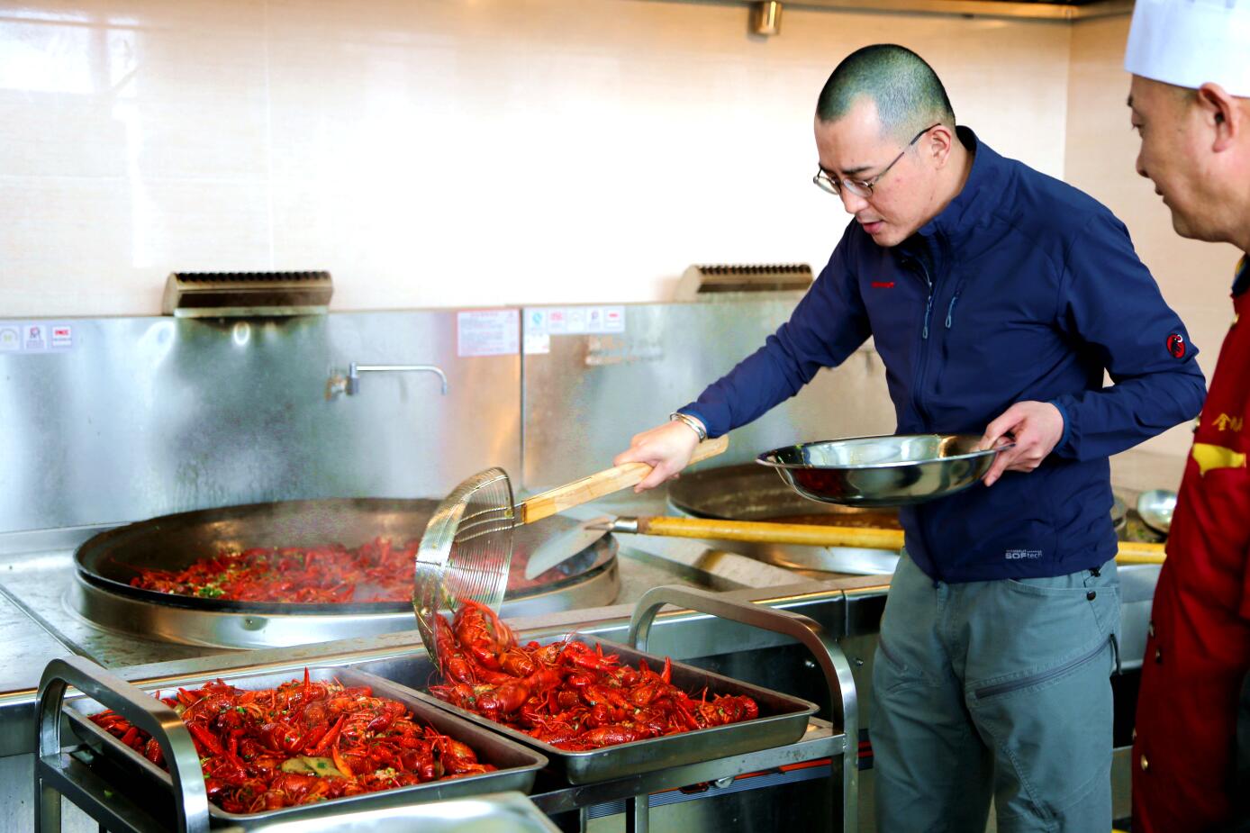 江苏城市频道主持人亚兵亲自体验金湖龙虾烹饪全过程